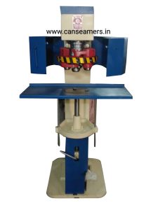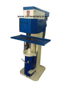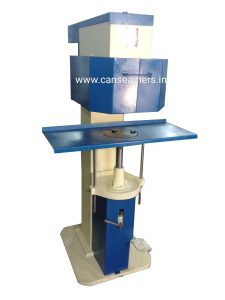 The Can with the Lid (finish) to be Seamed is placed on the lifter plate and the pedal are pressed. The Can is lifted to the Seaming Chuck and the seaming operation begins. After completion, the lifter plate with the seamed Can are mechanically brought down to the rest position