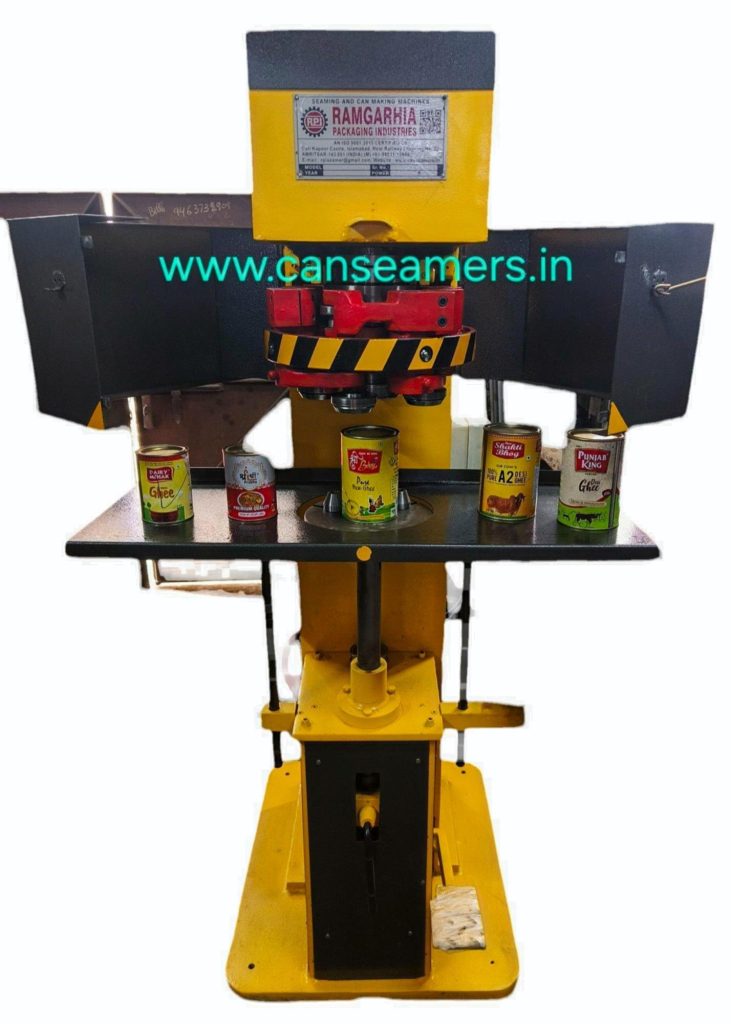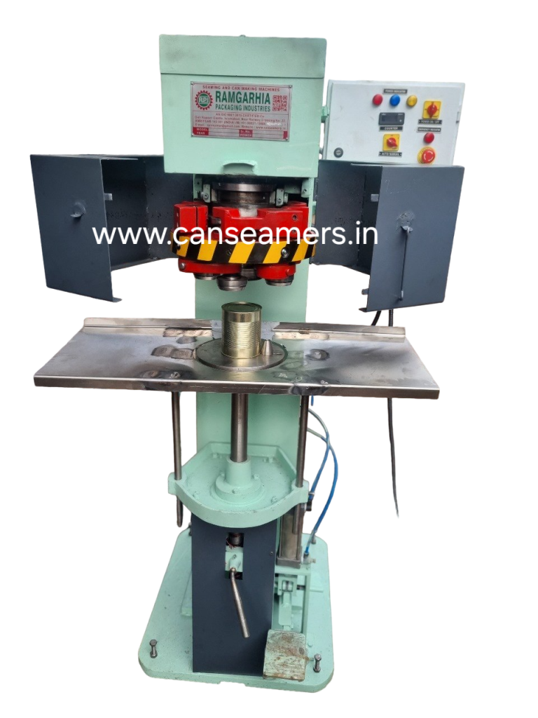 These machines are used for seaming round can such as metal plastic composite containers. The rotating head design maintains a stationary can during the seaming operation our machine are not produce type of pollution such as noise our design are rugged. A wide range of safety features and interlocks are available to protect both operator and equipment